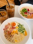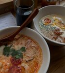Увидела данное заведение не так давно совершенно случайно - стало любопытно, как тут и что. Спустя буквально пару дней порекомендовала сюда сходить знакомая. И вот наконец посетили, попробовали некоторые позиции меню, можно и вердикт свой вынести. Само помещение внутри небольшое, но, как мне кажется, это не минус, а, напротив, плюс, очень уютная атмосфера. Брали эспрессо-тоник, сырный рамен, том ям рамен и роллы сырная креветка. Все блюда очень зашли. Я в восторге от роллов, у них очень нежный сырный вкус, прям гастрономическое удовольствие. Сырный рамен тоже попал в сердечко, бульон невероятный. Том ям рамен брал молодой человек, он тоже оценил. Обязательно вернёмся снова, чтобы попробовать и другие блюда Хотелось бы ещё отметить обслуживание - очень милые девушки были.