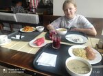 В Ростове проездом. Искали место, где можно было бы качественно и недорого поесть и нашли по отзывам в картах это кафе. Кухня неплохая, но есть что доработать. Два блюда были пересолены. Обедали втроем. Взяли грибной крем-суп, зеленый борщ, плов, гуляш, салат со свëклой, рис, булгур с тефтелями, кисель и компот. Чек вышел на 1119 рублей. В подарок дали три ломтика арбуза. В общем поели неплохо.
