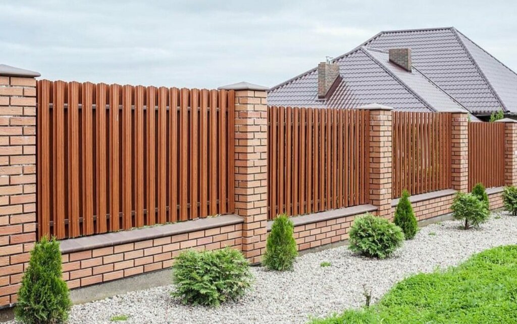 Монолитные заборы с кирпичными столбами