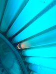 Была сегодня впервые в этой студии загара. Попросила у администратора самую мощную кабинку (была, если память не изменяет #9). В своем солярии (с синими и красными лампами) за те же 7 мин сгораю, а тут практически по нулям. Обслуживание, и состояние кабинок - уровень эконом. • Больше всего напрягли подгоревшие снизу (видимо очень старые) лампы, которые постоянно мигали (фото прилагаю) - сомневаюсь, что это БЕЗОПАСНО; и конечно же такое состояние ламп говорит о том, что владельцы сильно н заморачивались с их заменой очень давно • Мусорная урна в кабинке переполнена • Улыбок от администраторов, увы, не дождёшься, девочки красивые, но совершенно не приветливые • Влажных салфеток, антисептика, средства для снятия макияжа и ватных дисков, как в других студиях загара - здесь нет. • В кабинке мало света, что затрудняет процесс ровного нанесения средства для загара (особенно с большим количеством бронзаторов) - без разводов не получится. • Свежевыжатых морковных соков в студии не делают (есть выше в фуд-корте) • Солярий выглядит грязным и стареньким Из плюсов: • Администратор проводила до кабины ✔️ • В продаже крема и детские морковные соки✔️ • Есть небольшое зеркало ✔️