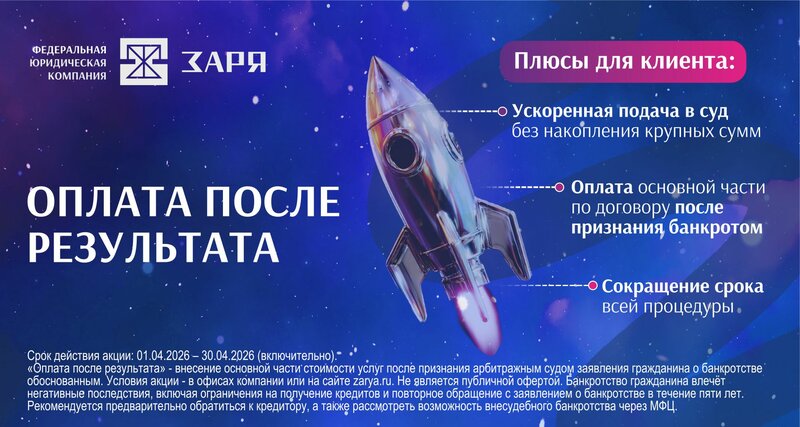 Оплата после результата! Срок действия акции: 01.04.2026 -30.04.2026 Внесение основной части стоимости услуг после признания арбитражным с...