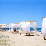 "-": Дикий неблагоустроенный пляж, нет ничего, ни зонтиков, ни навесов, рядом одно кафе. "+": Вода чистая, мусора нет, людей мало. Попробуем как-нибудь приехать с палатками с ночёвкой