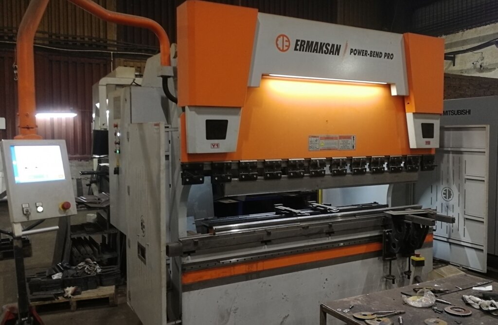 Листогибочный пресс обрабатывает детали до 2.5м толщиной до 5мм (зависит от характеристик материала).
