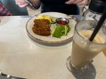 Недовольный персонал. По детскому меню заказывали молочный коктейль ( который вообще не вкусный) пюре с котлетой нам понравилось. Себе заказывала салат с тигровыми креветками в салате не хватало ингредиентов тех что по меню. Молочный коктейль был как будто сделал из старого банана который почернел и не пригоден к эксплуатации.