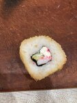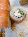 Просто отвратительно! Ролл золотой за 530 рублей: вместо икры лососевых рыб как написано в меню положили искусственную , которая красит ( я ее сразу выбросила, сыр тоже самый дешевый похоже. Лосось нарезан настолько тонко, что просвечивает и рвётся, огурец не первой свежести, прям вялый. Хотя цена нормальная, за эти деньги обычно хорошее качество! В другом ролле вместо заявленного авокадо завявший огурец!