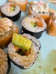 Заказали роллы, горячие и запечённые + довольно быстро привезли,все горячее, много сыра, в целом приятный вкус - удивило,что специй нет в комплекте совсем, обычно хотя бы на одну персону входят в состав, очень много риса и он крупный))) как для каши или гарнира Порции средние по размеру.