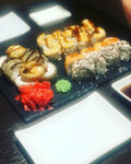 Классное место, интересный дизайн светильников и окна с пузыриками позволяют иной раз отвлечься и задуматься. По поводу еды - мне очень нравится, если вы едите унаги темпуру прямо там (у них есть и доставка), такое ощущение, что сам маленький мастер суши залез к тебе в рот и разминает твои вкусовые сосочки прежде чем придут сигналы вкуса на вкусовые рецепторы, также там есть пицца, сладкие ролы и многое другое. У меня есть удивительная история с посещением данного места, которая осталась в моей памяти навсегда. Немного стыдно, что первый раз ничего не заказал (воспользовался услугами туалета), но после, спустя год, исправил ситуацию посетил, сделал тестовый заказ (унаги темпура и пицца 4 сыра) остался доволен, заказываю и по доставке)