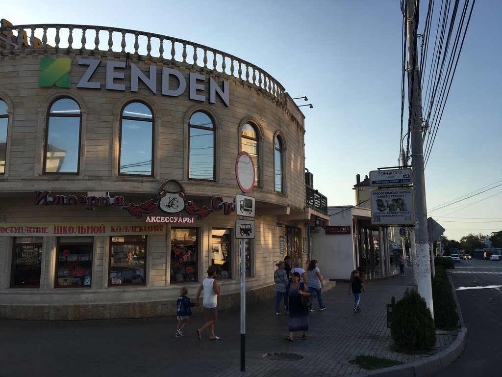 Магазин Zenden сетевой, на удивление большой выбор обуви как женской так и мужской и качество хорошее цены тоже)! Большой просторный магазин, пощупать примерить походить можно , второй этаж, много продавьцов консультантов если подгадывать под привоз есть хороший выбор! Обувь дистанционно не купишь)! А если купишь то пожалеешь, мы не такие богатые чтоб покупать дешевые вещи)! Так что рекомендую к посещению. К сожалению возле магазина припарковаться на машине трудно. Пешочком самое то!
