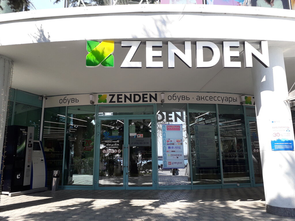 Отличный магазин обуви! Выбор а ценовая политика, скидки, акции всё отлично для покупки. Я всех знакомых привёл и всем советую. Никто не верил, что эту обувь производят у нас в стране. Два коньяка или пара хорошей обуви по скидке, пять фляг - сапоги! Выбирай народ , места нужно знать только! Бросил пить и курить - нужно в ZENDEN за покупками Рубить !!!