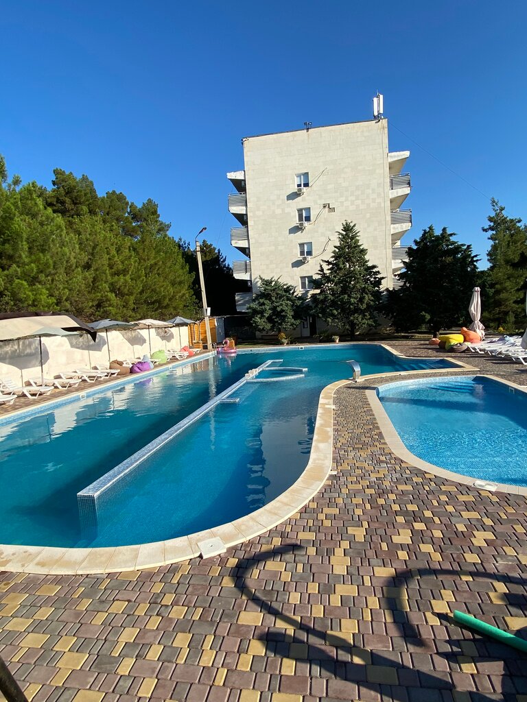 Отдыхали 8 ночей в этом пансионате. С 1 по 9 сентября 2025, погода была прекрасной, море тёплое. Все очень понравилось, номера уютные, немного конечно требуют ремонта, но в целом все хорошо. Питание по системе шведский стол, думаю голодным от туда ни кто не уходил,каждый мог выбрать по своему вкусу, выпечка вкусная, пельмени требуют дороботки😁, они не вкусные... На территории все чистенько, пахнет кипарисами, как написано на их сайте спортивным инвентарём пользоваться можно, бесплатно. Единственное нужно им подкупить в столовую еще детских стульчиков для кормления, много сеймей отдыхали с маленькими детьми, а стульчика всего три.