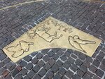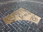 Нулевой километр пользуется спросом у населения! Постоянные очереди на фотосъёмки. Кидают монетки, чтобы загадать желание и вернуться. Но редко, кто смотрит под ноги. А там замечательные работы Рукавишникова: на бронзовых пластинах изображены животные из разных частей света.