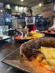 Обычная забегаловка со скудным меню, малюсеньким помещением и посредственным обслуживанием. Зашли сюда перекусить, повелись на положительные отзывы. Сели на веранде, внутри очень мало места было и духота. Официанта с меню ждать было бесполезно, поэтому сами зашли и все заказали. Из еды заказали только картошку фри, нагетсы, и колбаски, больше из «приличного» ничего не было. Два сорта пива, кто-то в отзывах писал, что его очень много якобы. Соус это просто кетчуп в соусниках. Колбаски подали даже не разъединив их. И принесли к колбасками только один набор приборов, а нас было трое. Салфетки тоже дали только когда вынесли колбаски, без салфетницы, просто положили на стол. Короч, место для маргиналов, никакого уюта, атмосферы и вкусной еды. Проще во вкусно и точка сходить, там и ценник ниже гораздо