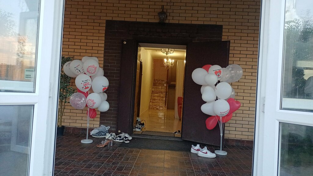 Мы работали декораторами в этом коттедже. Очень приятные хозяева. Когда мы подъехали на оформление они прибирали, мыли полы и поливали деревья, очень чисто и опрятно. Всё с такой заботой. Зал камерный человек на 20. Рядом кухня, туалет. На других этажах не были.