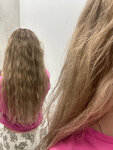 Это моё первое наращивание и я думала, что буду долго выбирать подходящее место по Питеру. Но в этом салоне меня расположило всё) Очень красивые, вежливые и компетентные девочки работают, шикарный выбор волос, который регулярно пополняется. Мои родные волосы весьма пористые, волнистые и ломкие. Главный страх был - что структура нарощенных будет визуально отличаться, да и тонировка с моих быстро смысвается, уходя в рыжину. Но мастер подобрала НАСТОЛЬКО идеально подходящие волосы, что меня это даже немного удивило😄 Особенно после первого мытья, когда волны моих волос и нарощенных идеально синхронизировались. У меня совершенно нет ощущения, что эти волосы не родные. Еще я переживала, что будет некомфортно, ведь у меня и трессы и капсулы. Но непривычно было только первые два дня, потом я их перестала ощущать, только когда прически делаю и мою - вспоминаю. Само наращивание было абсолютно приятным по ощущениям) Вроде моего мастера зовут Анастасия, такая красивая, что я забыла имя😄 Ничего не тянуло, не болело, не цеплялось. И сделали мы все часа за 2 Я безумно рада, что выбрала именно это место и теперь влюблена в наращивание ❤️ Благодарю за такую шикарную работу 🥰 К сожалению нет красивых салонных фото, но прикреплю после первого мытья, когда они сами легли без укладки в естественные волны и что было до