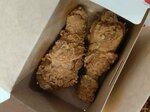 Голень цыпленка-бройлера, вода, маринад, панировка (мука высшего сорта, соль, специи), масло для жарки. Аллергены: глютен пшеничный, возможно наличие сельдерея и горчицы. Нежные куриные ножки в хрустящей панировке. Взрыв вкуса в каждом кусочке (3 шт.