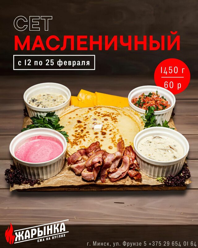 The first time we came to this cafe was by chance, after watching a play at the House of Writers. And since then, Zharynka has become one of our favorite cafes.Cozy atmosphere,delicious dishes,beautiful presentation, friendly staff. Therefore, when I needed to organize a family dinner on the occasion of my mother's birthday, my choice immediately fell on the Roast. And indeed, our holiday was a success: it turned out to be somehow warm and homely. A lighted fireplace gave a special atmosphere of comfort! Separately, I would like to thank the administrator Vladislav and the waiter Evgeny for their customer orientation, sensitive and attentive attitude to visitors. It's a place you want to return to! 👍