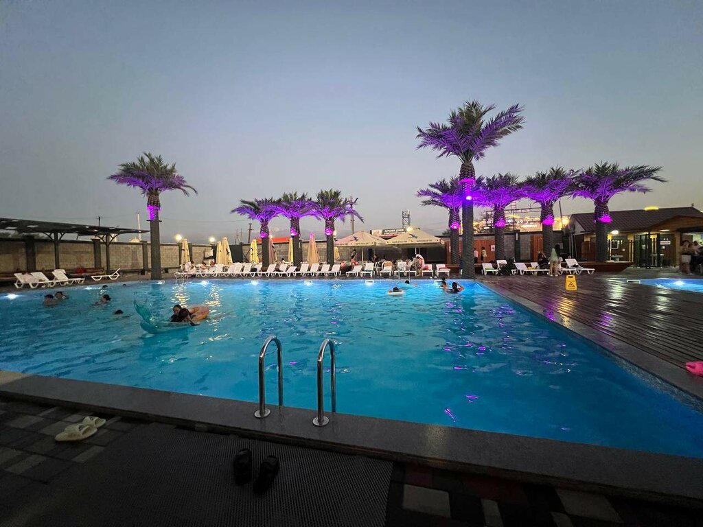 it's a good place, palm trees glow beautifully in the evening, but the service is lame, there are few waiters and they run back and forth, they don't have time, and they also forget what they asked for or they were all standing in a crowd, and we were waiting here. Then they brought the menu themselves, and it was delicious, the pool was clean, and I liked it.