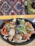 Очень вкусная еда! Если паста с морепродуктами , то их будет много, если роллы , то не уступают по качеству тем, что в Мск и СПб. Немного шатается стол, мебель подустала , но это мелочи) Рекомендую
