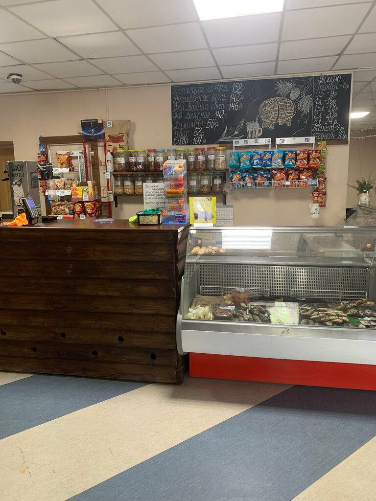 В баре-магазине постепенно делается ремонт. Во втором зале положили плитку, улучшили пол, приходишь, а там что то новенькое. Пиво только Жигулевского пивзавода разливное. Снеки, рыба, сыр, уголь, розжиг в достаточном количестве, чтобы закупиться на пикник. Очень хорошая парковка для машин, сквозной проез по ровной асфальтовой дороге. Рядом пятерочка, можно купить все остальное для пикника.