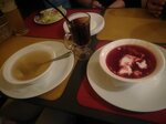 Летом удобно посидеть снаружи в закрытой веранде. Но если погода вечером холодная, то пледов на всех не хватает. Брали борщ, куриный бульон, овощную пиццу, пиво, глинтвейн. Еда простая, без особых изысков, вкусно. Пиво нормальное, глинтвейн не сильно насыщенный. 30 рублей за двоих. Цены чуть выше среднего. Обслуживание неплохое, правда, как выше упоминал, пледов не было, ложку так и не принесли, которую просили. Какое хотели пиво, того не было, какое выбрали вторым, подсказали, что сильно пенится и лучше взять другое. В целом хорошо посидели после посещения кинотеатра.