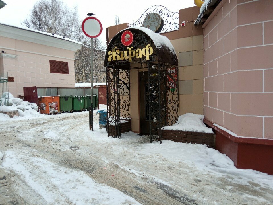 Зашли в кафе в качестве туристов, искали по отзывам где можно вкусно и недорого поесть. Выбор пал на кафе "Жираф". Что могу сказать: интерьер нтереснаый, еда вкусная (все, что заказали - понравилось), хоть к вечеру выбор был небольшой. Персонал доброжелательный, что большой плюс. Находится кафе рядом с театром и театральным сквером. Из минусов: я так понимаю, кафе немного похоже на забегаловку, т.к. рядом с нами сидели мужчины со спиртным. Но в целом, это нам не помешало поужинать, все было культурно.