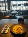 Место, где каждое блюдо - в точку 👌 Понравилось абсолютно всё! Будда-боул бесподобен, заправка идеальная, состав - вне всяких похвал. Насыщенная и щедрая порция пасты. Нежнейший десерт и кофе с кимчи. Блюда однозначно стоят того, чтобы их попробовали. Атмосфера затемненная. Столики близко расположены друг к другу, соседей очень слышно. Но если иди сюда, чтобы поесть, а не общаться на личные темы, то вполне 😁 При этом днём людей мало и было довольно свободно.