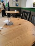 Дикое какое место: грязные столы,громко звучит то ли узбекская,то ли таджикская музыка. Вид тортов и пирожных ужасный,некрасивый, всё какое то кривое. Поинтересовалась у продавца про музыку. Ответила,что работники кухни включают и слушают. Знала бы заранее,что в этом заведении работают на кухне и готовят вашу продукцию представители Средней Азии - не стала бы покупать продукцию. Теперь все ваши пекарни буду обходить стороной.