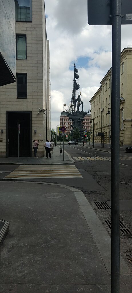 Давно уже не Спутник, жилой дом с подземной парковкой, 1 этаж Выставочный центр Инфопространство, 2 этаж офисы, выше жилой фонд, часть окон на храм, часть на Петра, несмотря на близость Москва-реки летом как на сковородке, зелени нет нигде, при хорошем дожде вода с Остоженки несется бурным потоком в котором заливает бордюры и легковые автомобили почти до скрытия колеса