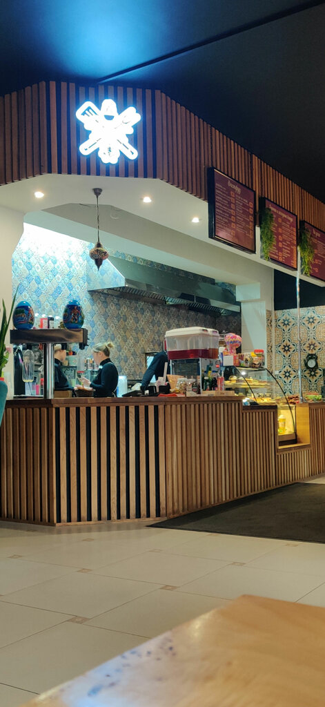 Здравствуйте! Заехали поужинать, так как было открыто. Не разочаровались! Недорого, большие порции (рассчитывайте свой аппетит!), много места. Быстро подали. Я всё съел и последствий не было. Дали контейнеры под несъеденное. Но вот нет какой-то изюминки или нотки для полноты впечатлений. Спасибо сотрудникам за их работу, а администрации хочу пожелать найти что-то интересное для перехода из хорошего кафе в интересное место для обязательного посещения. Рекомендуем всей семьёй!