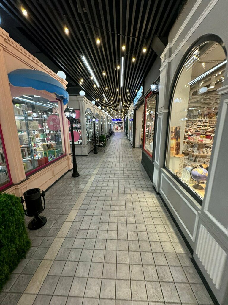 Beautiful inside. It is made in the form of streets with shops. But it is very compact with a small number of shops. Overall, I left a pleasant impression
