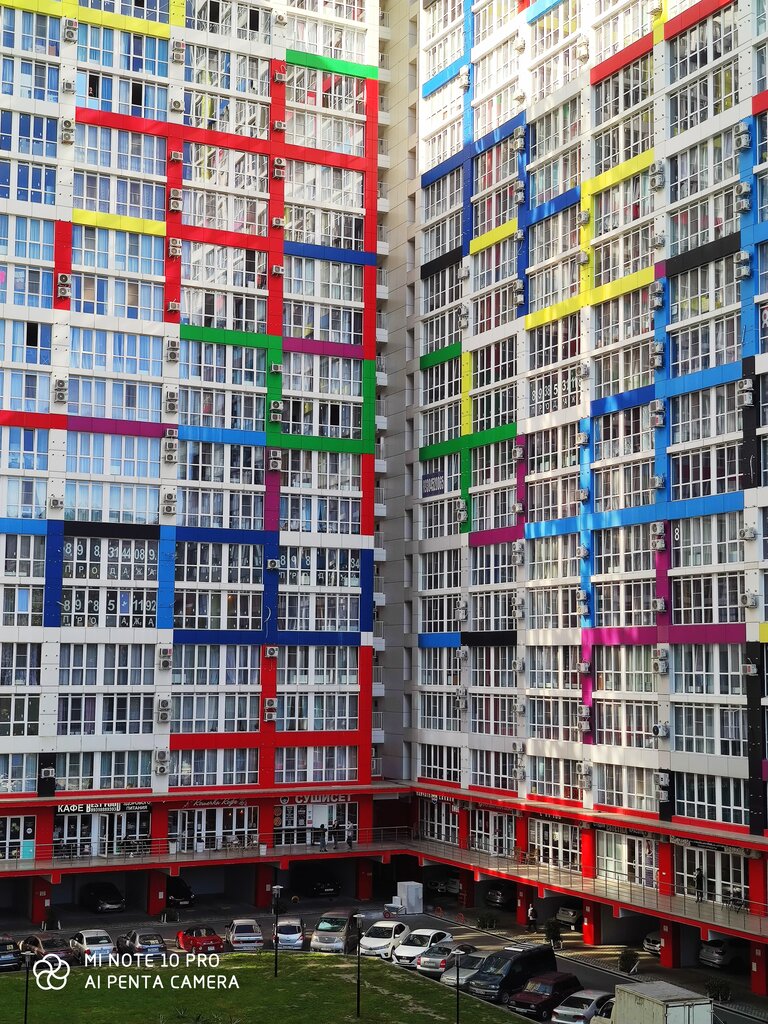Современый жилой комплекс в центральном районе Сочи, много парковочных мест по меркам Сочи. Удобно проживать постянно,хорошая шумоизоляция , низкие комунальные платежи, прекрасные виды с верхних этажей.