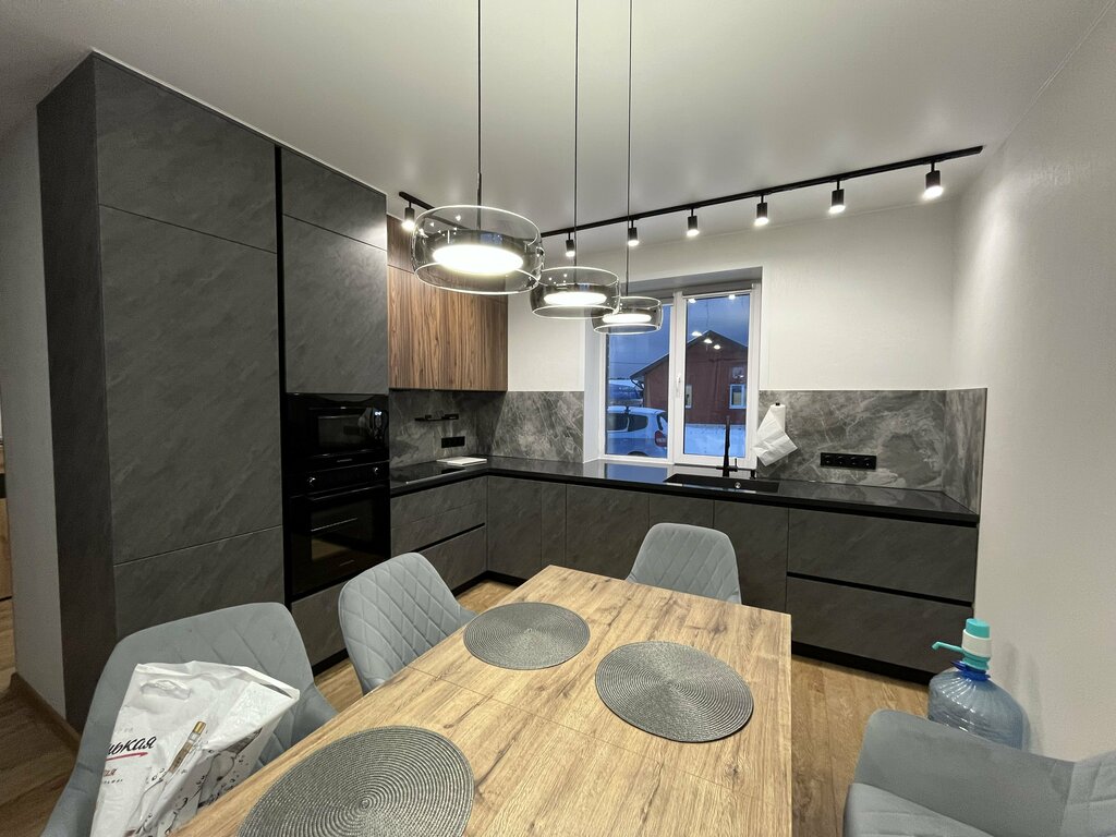 Размеры: 2400 (ш) х 1600 (ш) х 2500 (в) х 600 (г) Фасад: МДФ Корпус: ЛДСП Столешница: пластик Фурнитура: Boyard Цоколь: пластик Техника клиента Цена указана на фото на момент установки проекта. Уточняйте цену у менеджера