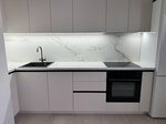 Размеры: 2770(ш1) х 3480(ш2) х 2700(в) х 600(г) Фасад: МДФ ПВХ Корпус: ЛДСП Столешница: акриловый камень Фурнитура: Blum, Hettich LED – подсветка Справочный расчет указан для комплектации на фото на момент установки проекта.  Уточняйте цену