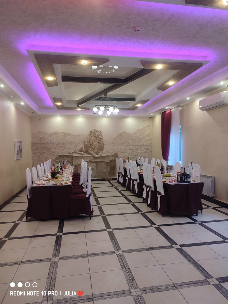 Очень среднее заведение по всем фронтам. Начнем с чистоты, когда мы приехали, мы были первые гости, все зеркала в разводах, санузел грязный, все стулья, а точнее накидки на них требуют стирки, они все в пятнах. Дальше по еде, еда среднячок. Первое, салат, цезарь. Мало соуса, много капусты, все нарезки выглядят бедно, тк позиций очень мало на тарелке, 5 рулетов, по 5 кусочков колбасы, сыр на нарезке нарезан с пол ногтя мизинца, разбавленный морс и тд. Но самое отвратительное это обслуживание. Мы с гостями сами расставляли салфетки, складывали тарелки, все столы грязные. Вынос блюд на 0, тк выносят сразу 2 горячих позиции, и гости не знают, за что хвататься. На 20 человек, нам дали 1 чайник кипятка, как по мне, это маловато, на такое количество гостей. Как итог, крайне посредственное заведение.