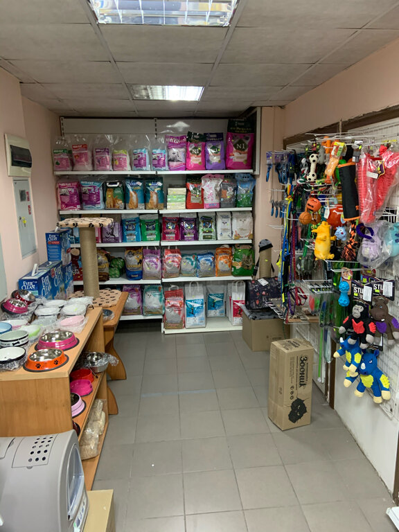 В магазине есть корма для кошек, собак, кроликов, крыс, попугаев и чёрт его знает кого ещё. Ассортимент большой, цены чуть выше, чем в сетевых зоомагазинах, но зато рядом с домом. Ещё есть наполнители для лотков