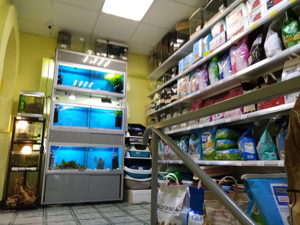 Хороший магазин. Небольшой по размеру, но ассортимент очень богатый. Продавцы всегда вежливо общаются и грамотно могут подсказать и рассказать о том или ином товаре.В прошлом году купила в этом магазине рыбок и оборудование в аквариум, соборудовпние работает исправно и с рыбками всё хорошо). Так же регулярно покупаю тут корм для собачки и соответственно корм рыбкам.