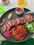 Побывала впервые после ремонта и изменения пространства. Для меня кухня посредственная, в салатах не хватает заправки и изюминки, обычные. Стейк почему то изначально подаётся нарезанным, поэтому пока его несут, он остывает. Совершенно обычный, в the бык стейки гораздо вкуснее. Пиво хорошее, лимонады тоже. Второй раз не пришла бы, возможно не повезло со сменой поваров.