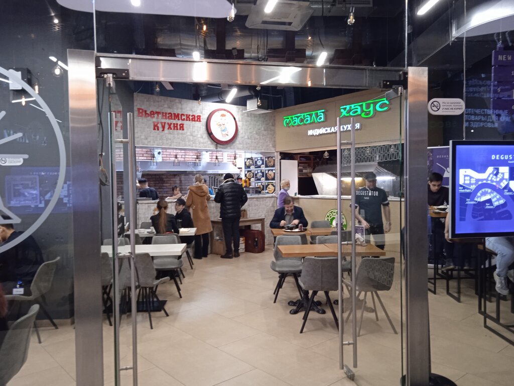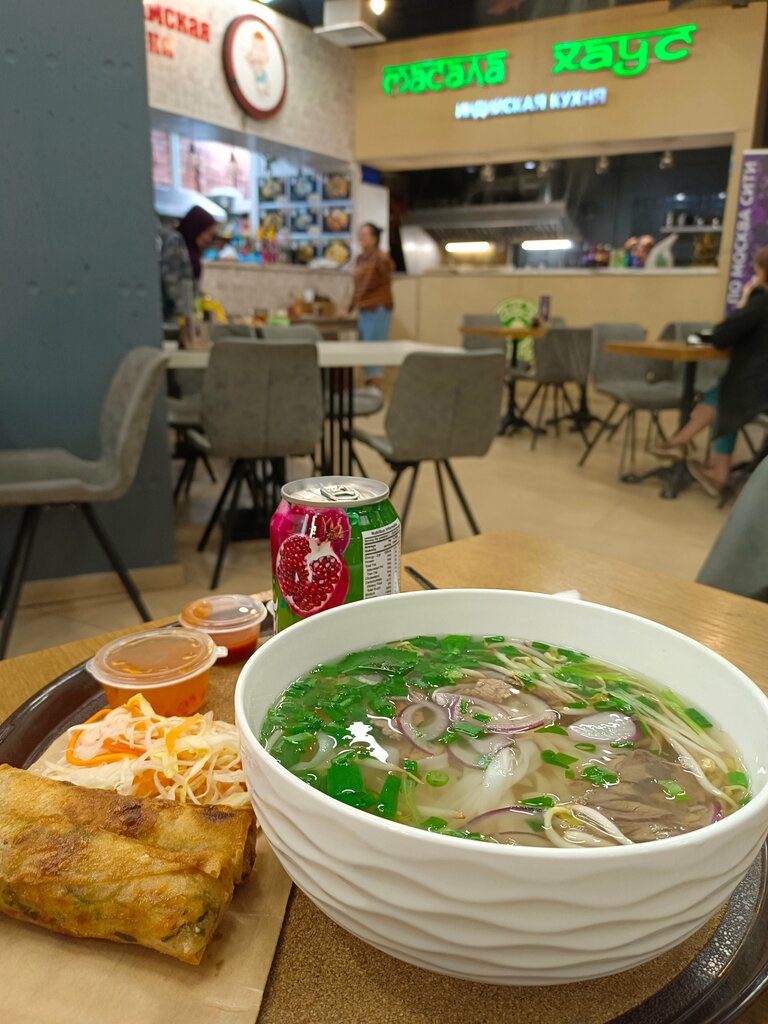 Атмосфера вполне себе вьетнамская) но от большинства заведений более приятного вида, хотя в целом все очень похожи и мало следят за чистотой, Фо бо довольно вкусный, по стоимости как и везде, ничем не удивили, но при желании чего то из вьетнамской я вернусь.