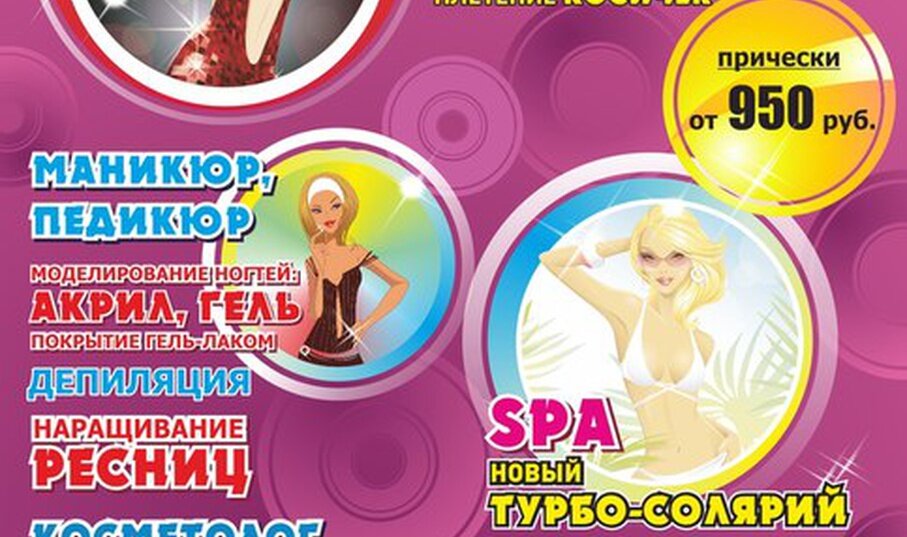 Beauty services:men's haircuts, women's haircuts, solarium services